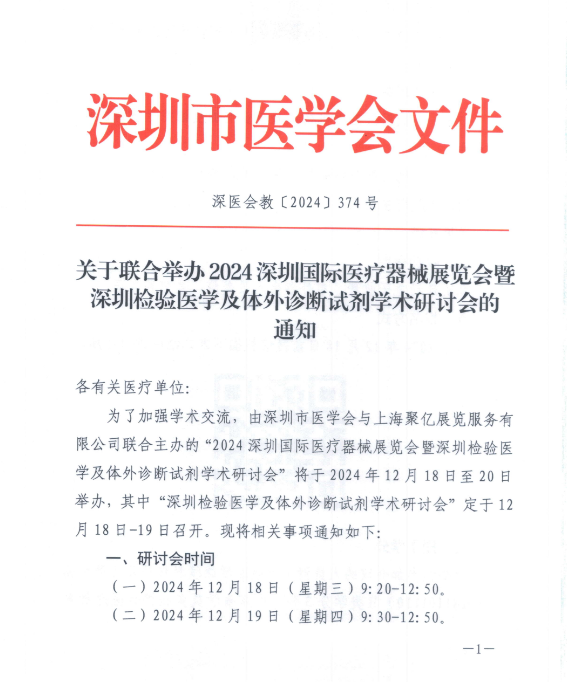 举办深圳检验医学及体外诊断试剂学术研讨会,全程参加会议的人员授予市级医学继续教育项目